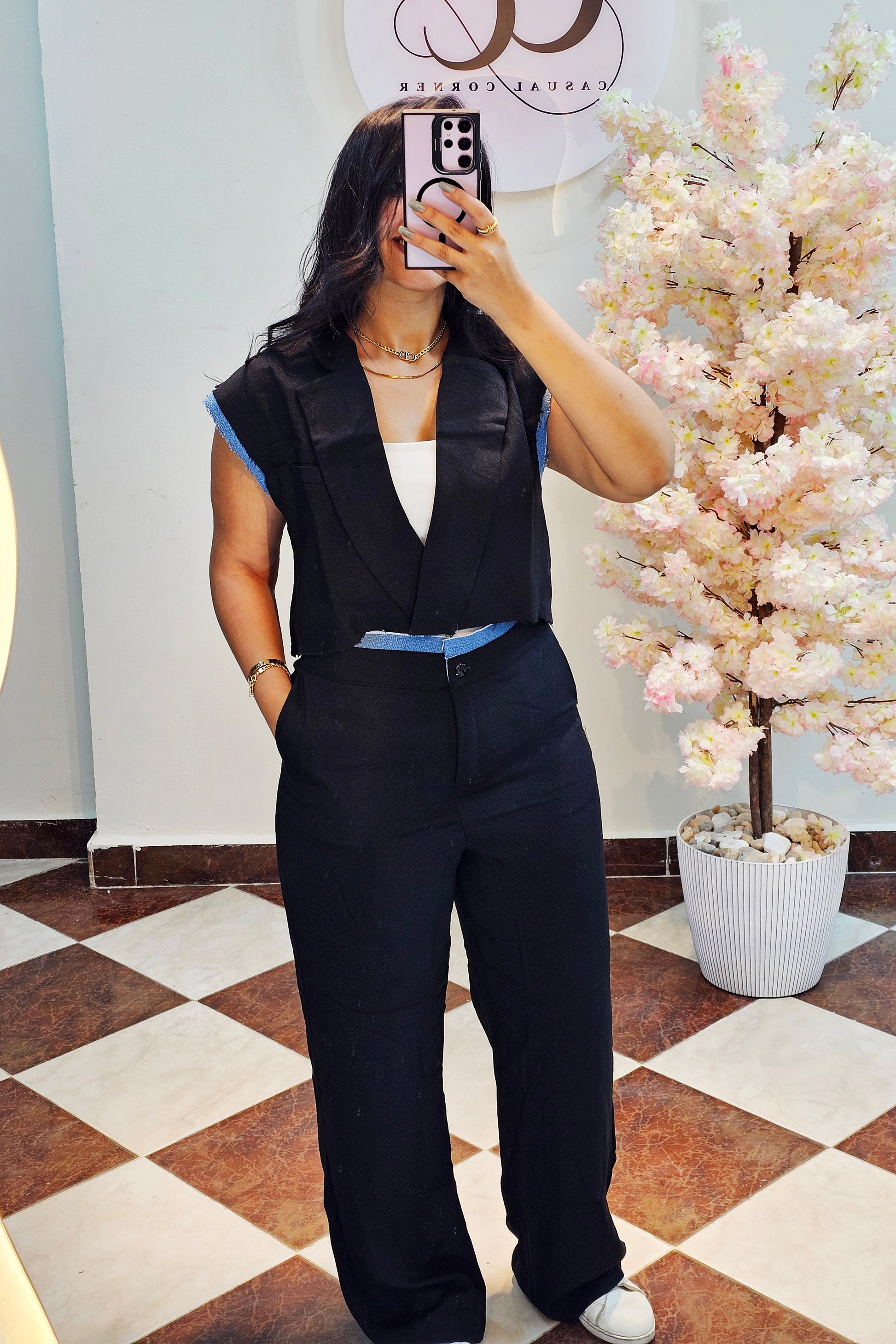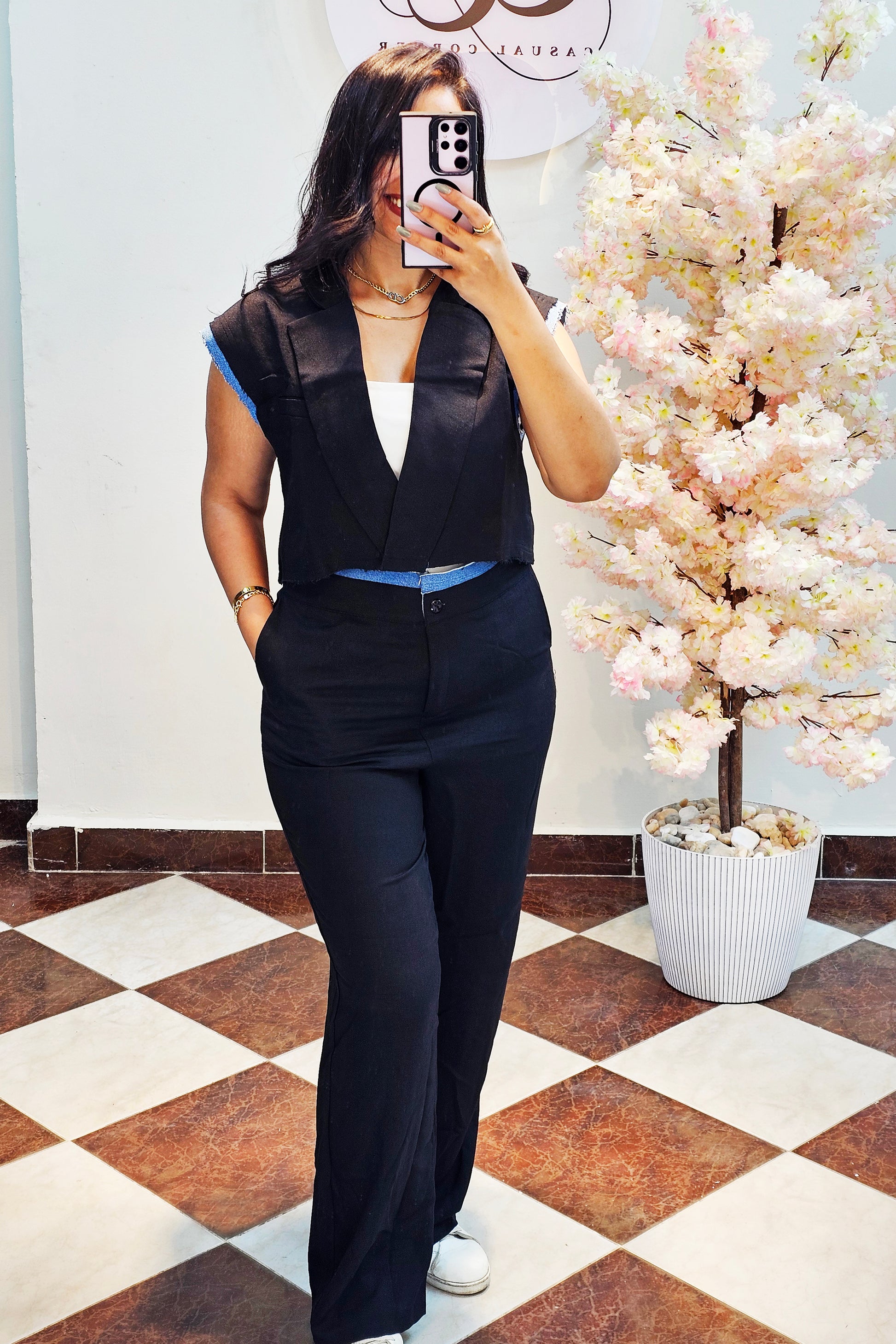 This Cropped Blazer & pants suit offers a tailored look with a modern twist. The cropped blazer provides a sharp silhouette, complementing the fitted pants for a cohesive and streamlined outfit. Ideal for professional settings or chic casual occasions, this suit combines contemporary style with structured comfort. Its design ensures ease of movement while maintaining a polished appearance. Perfect for those seeking a refined yet fashion-forward ensemble.